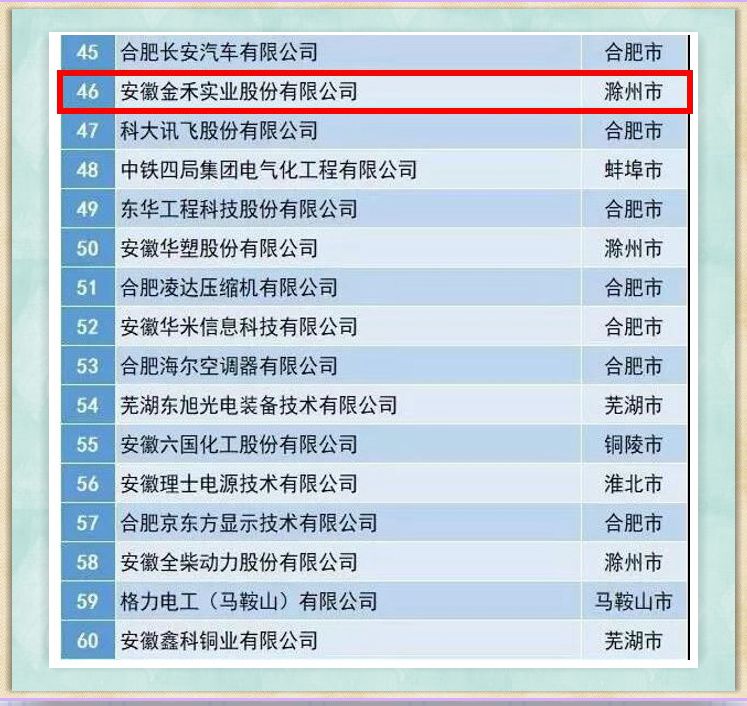 According to the statistical data of the National Torch Plan and with the total income of the enterprise in 2018 as the shortlist criteria, the company was selected as one of “2018 Top 100 High-tech Enterprises in Anhui Province” by Anhui Science and Technology Department and Anhui High-tech Enterprise Accreditation Management Work Leading Group Office, ranking the 46th